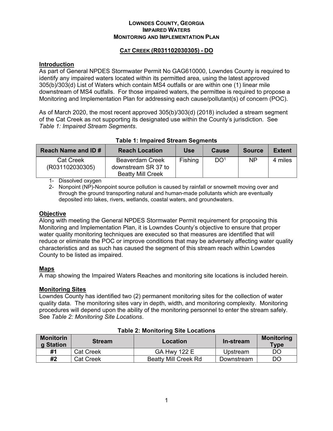 Lowndes County, GA, Stream Monitoring and Stormwater Permit